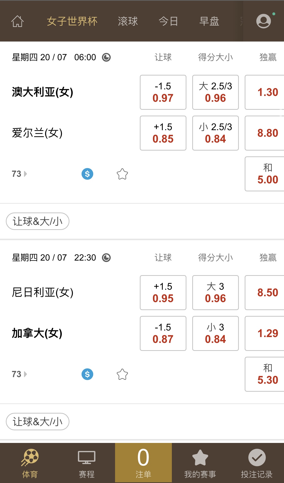 女子世界杯赔率