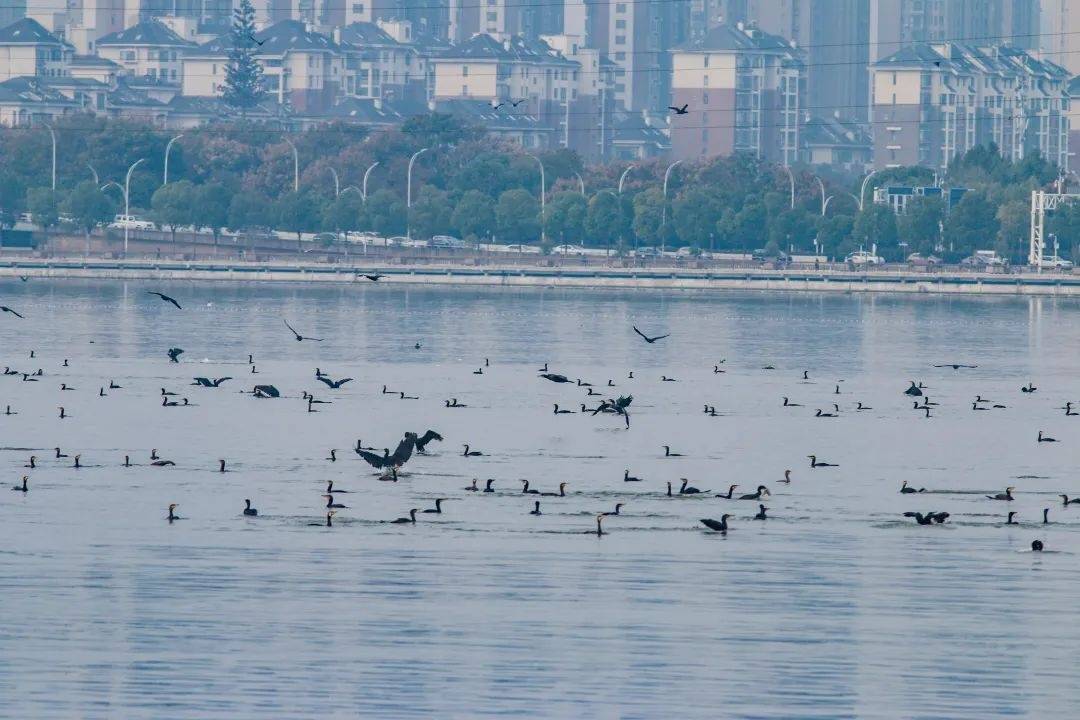 普通鸬鹚飞来南湖捕鱼洛杉矶v艾斯柏兰斯。图/“江城林语”公众号